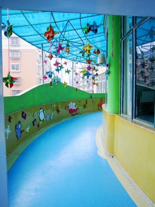 香港珈琳五彩風(fēng)車玫瑰園幼兒園是香港珈琳教育集團(tuán)打造的長(zhǎng)沙普惠性幼兒園,總占地面積3200平方米,戶外活動(dòng)場(chǎng)地600多平米,園內(nèi)環(huán)境整潔優(yōu)美,各種設(shè)備設(shè)施齊全。其地板采用我公司安裝的PVC地板pvc地板表層的耐磨層有特殊的防滑性,而且與普通的地面材料相比,pvc地板在粘水的情況下腳感更澀,更不容易滑到。因?yàn)槌?jí)的防滑性,所以在公共安全要求較高的公共場(chǎng)所如機(jī)場(chǎng)、醫(yī)院、幼兒園等是首選的地面裝飾材料。